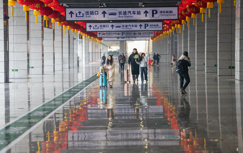 春节过后,高铁站节日气氛还未消散,大学生已经开始返校。