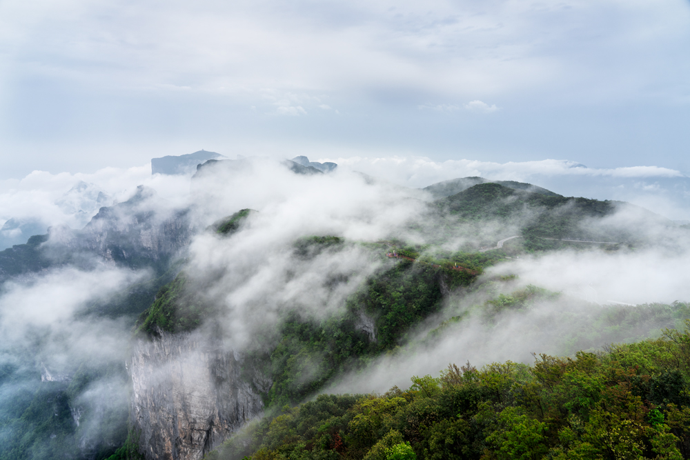 七星山,最高海拔1528米,雨后的七星山云雾翻腾,蔚为壮观,山巅之路穿行在云海之中,如云中天路。