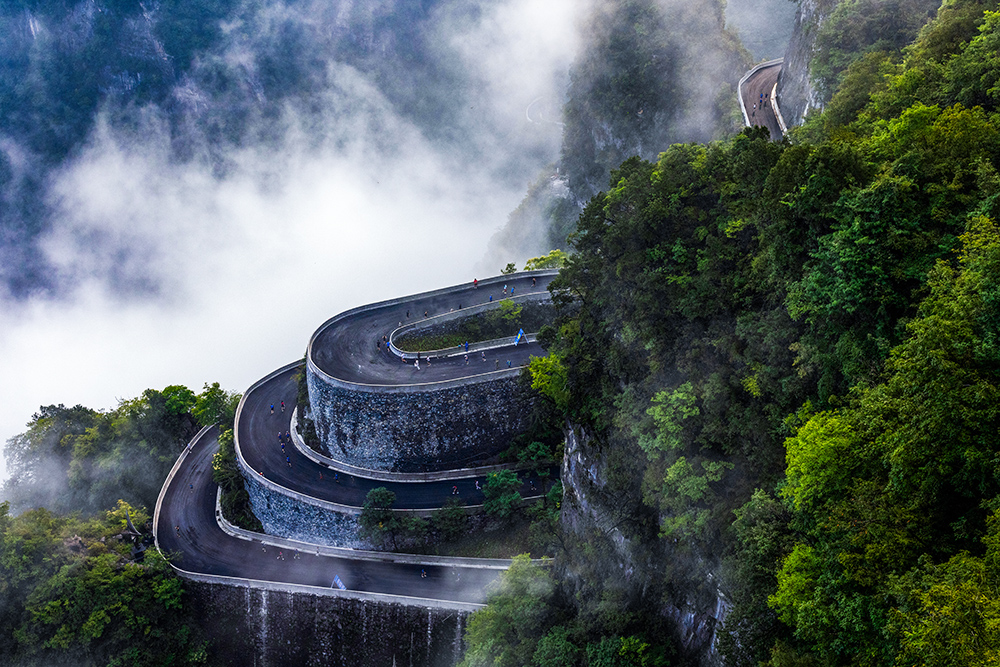 2025年8月31日拍摄于天门山国家森林公园。时正举行“2025冲顶天门——全国登山挑战赛(张家界天门山站)”