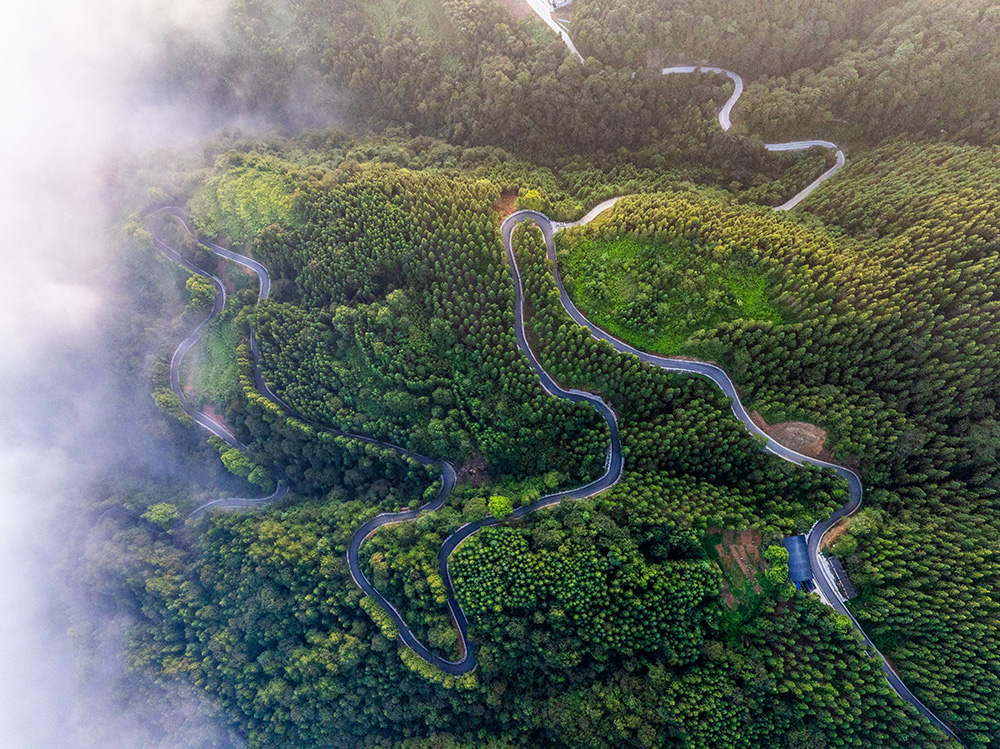2025年9月3日拍摄于堡子届林场。银灰色的公路于万顷绿涛般的林海中蜿蜒穿梭,时而回旋,时而伸展,在山峦沟壑间书写出流畅又富有韵律的诗行。