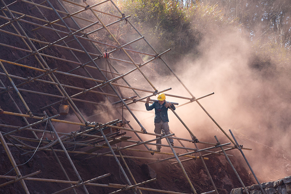 2018年3月摄于慈利县东岳观,在公路上看到公路山边护坡施工场面十分震撼,于是拍摄了这张照片。