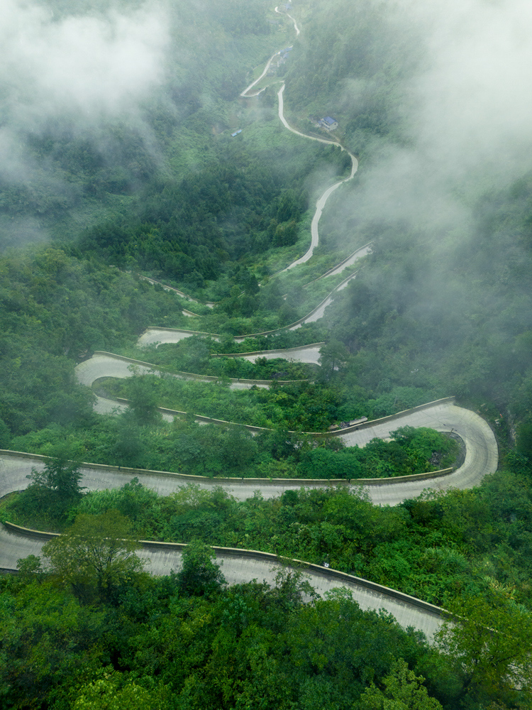 此盘山公路,位于桑植县龙潭坪镇斋公坪村,是湖南省张家界市的一个偏远村落。地处桑植县西北部深山腹地,群山环绕,生态资源丰富。该村保留了土家族文化特色,拥有国家级非遗项目土家族撒叶儿吲、省级非遗项目桑植傩戏等传统文化。