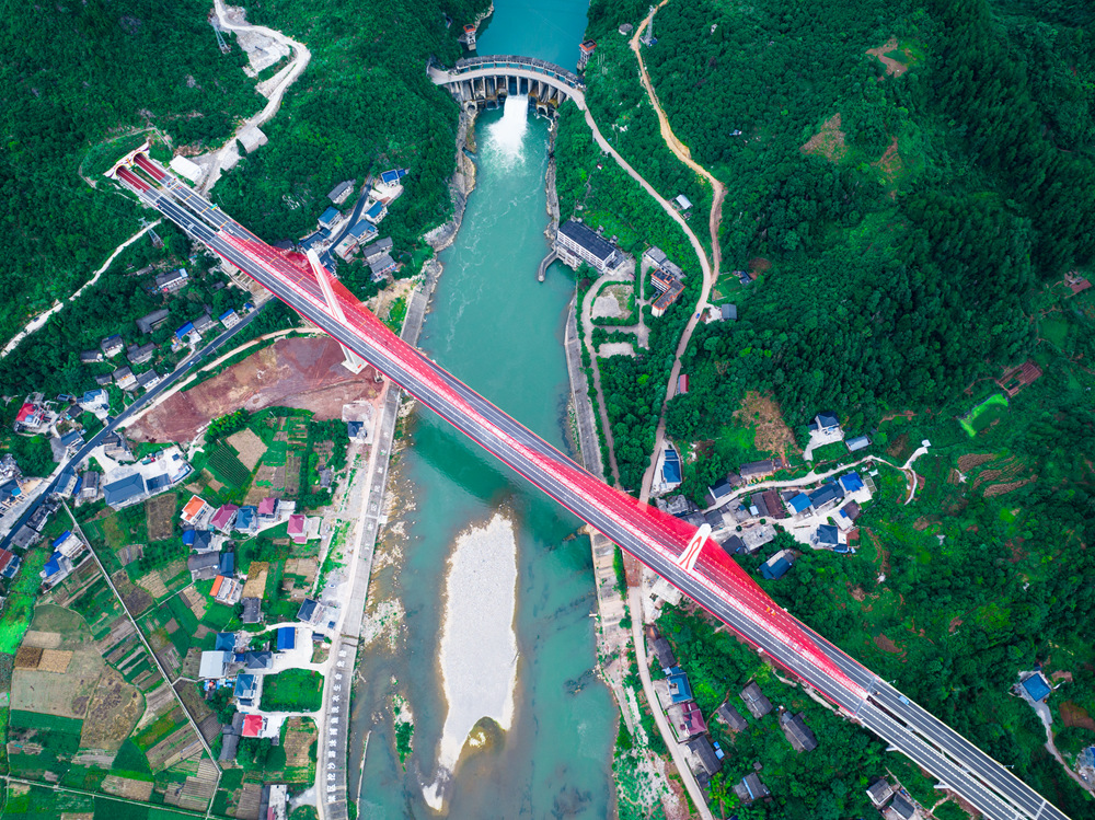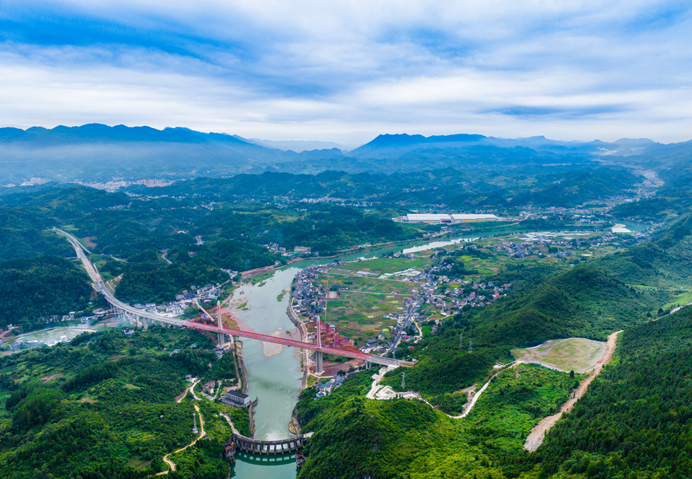 在张家界桑植县的山水间,即将通车的桑龙高速横跨澧水、串联群山,铺就发展的新“出路”。造型独特的澧水帅乡特大桥,以亮眼的红在青山绿水间划出恢弘弧线,从高空俯瞰,高速路网与蜿蜒澧水交相辉映,一边是村落田园的烟火气,一边是现代化基建的蓬勃力,传统与现代在这片土地上和谐共生。桑龙高速将为桑植经济注入澎湃动能,让这片镶嵌在澧水之滨的红色土地,向着开放与繁荣的远方加速迈进。