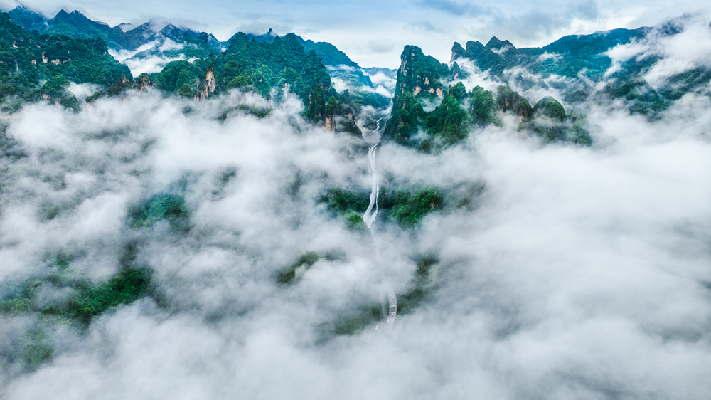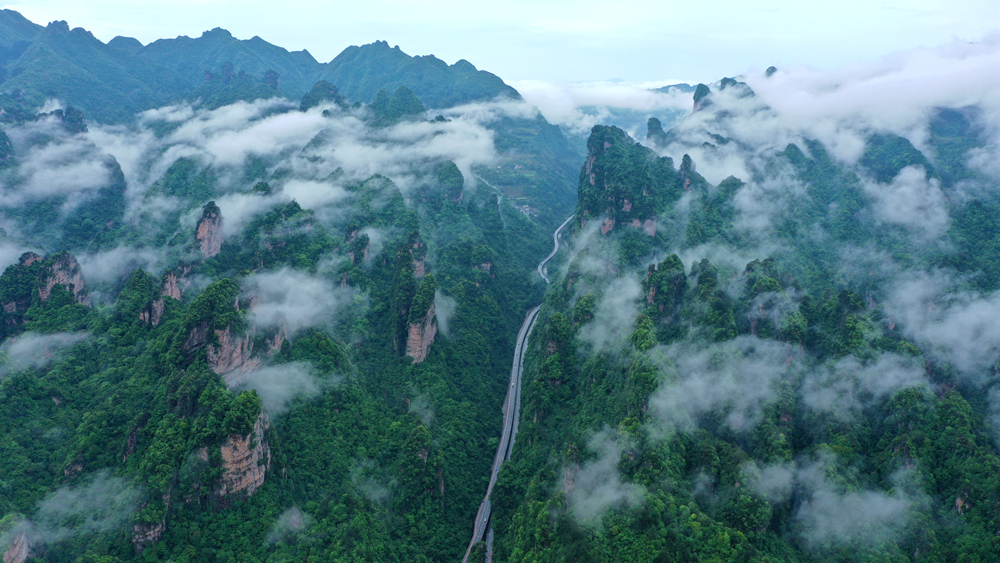 武陵山大道连接张家界市城区和武陵源景区,是张家界著名的景观大道,从天门山下到索溪河畔,沿线风光旖旎,如梦如幻。穿行雨后山谷间,宛若梦境一般。