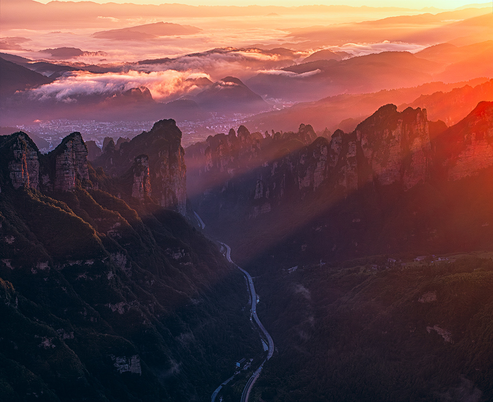 清晨的百丈峡裹着晨雾苏醒,陡峭崖壁如雄关矗立,晨光悄悄漫过岩层,把青绿的峰、乳白的雾、赭色的石,一笔笔晕进"画卷"里,连风都放慢脚步,怕搅乱这帧刚铺展的晨景。