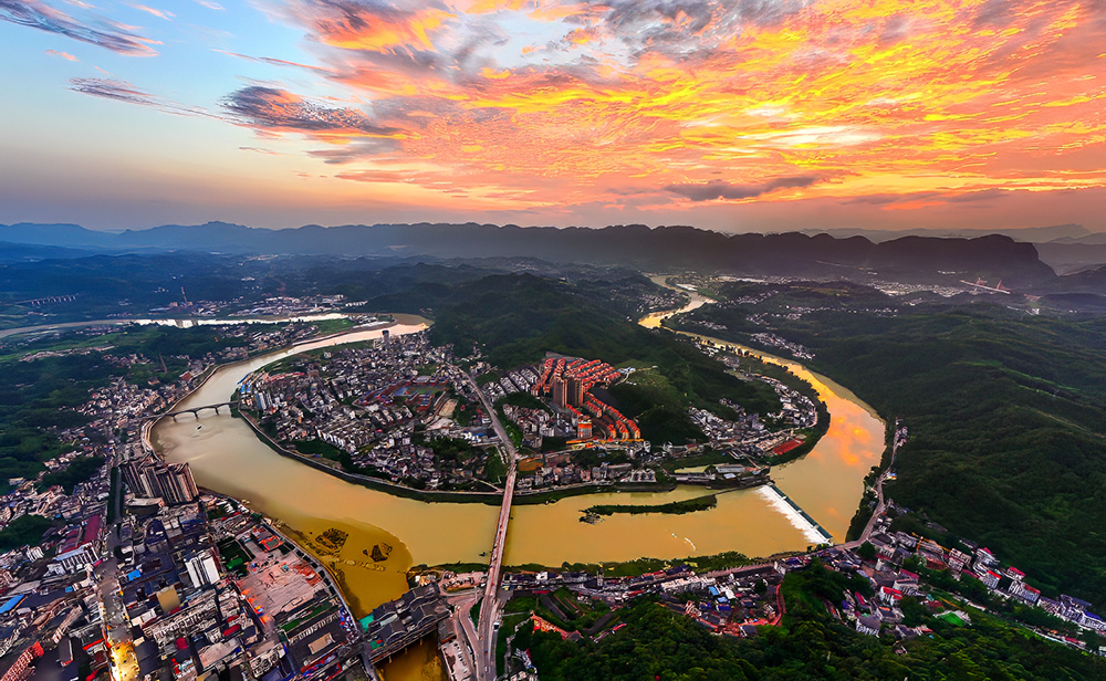暮色里,桑植山城被丹霞裹成红色锦缎。贺帅故居的檐角挑着霞光,仿佛在复刻当年桑植儿女追随英雄的炽热;远处群山如黛,却被晚霞描上红边,像极了革命旗帜舒展的轮廓﹣﹣这"染"透丹霞的帅乡,每一缕光都是对英雄的致敬,每一寸土地都藏着红色的传承。