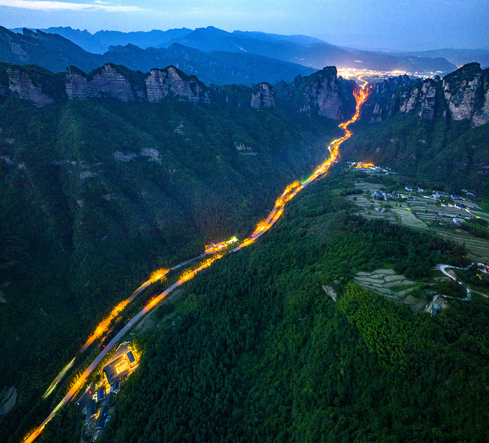 张家界市武陵山大道百仗峡路段夜景非常美