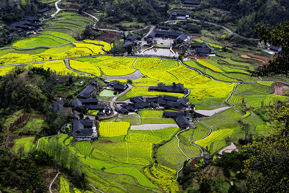 最美石堰坪,大路围绕村庄转。便利老百姓通行。拍摄于2022年3月27日