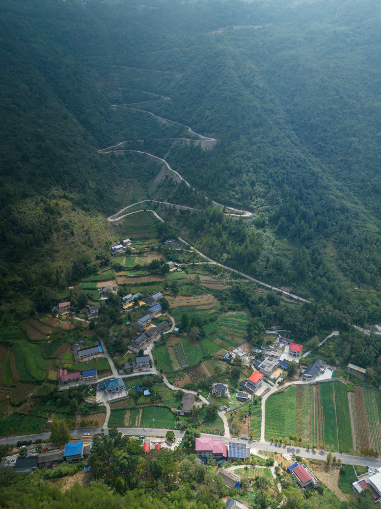 拍摄于2025年官地坪镇,平头界烟叶产业盘山路。