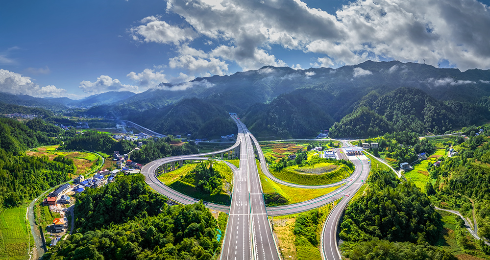桑龙高速陈家河互通 2020 年启动建设,现已建成通车,“蛟龙” 显其破山地魄力,通车后将带乡村旅游、通产品销路,让山区与时代 “竞风流”,焕新三农发展面貌。 2025年8月16日拍摄于桑植陈家河