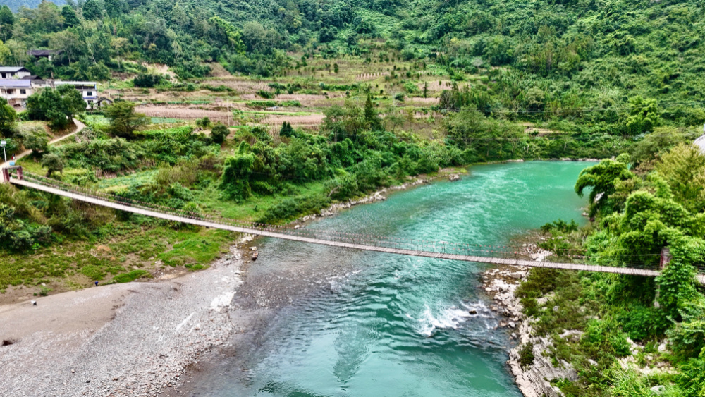 铁索晃着风的节奏,凉水口人的脚步便跟着轻晃。脚下是奔涌的溪,身前是漫山的绿!