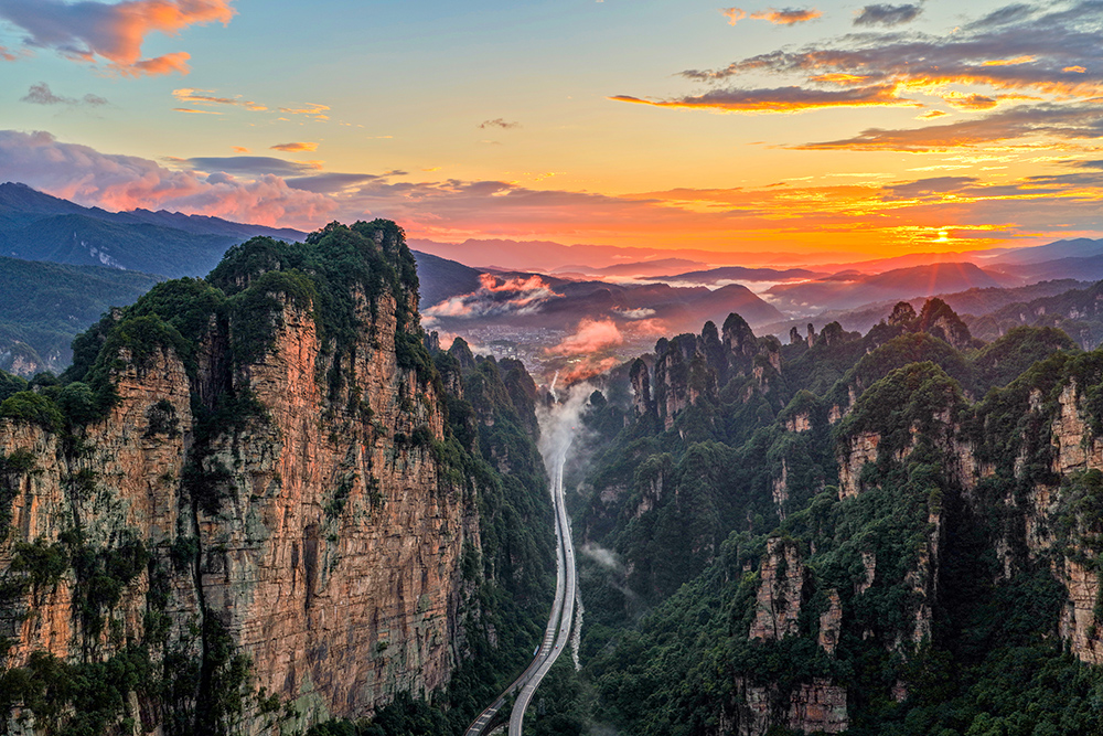 霞染奇峰,天路通幽