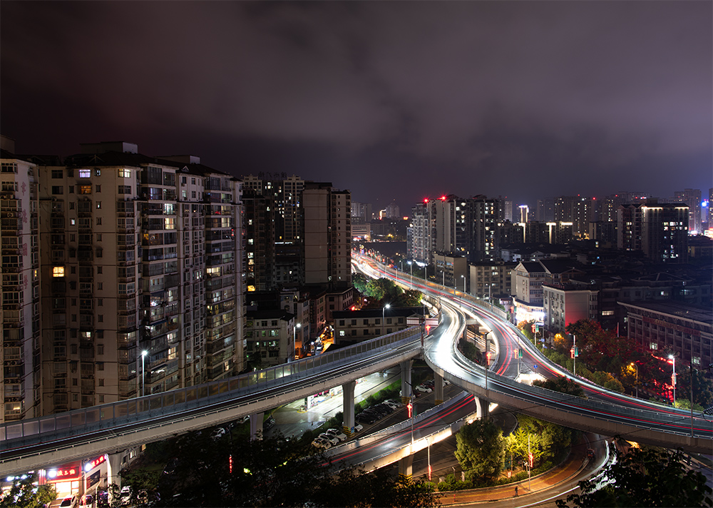 张家界城市夜色,灯光闪烁,交通道路申通无阻。