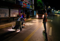 夜幕下的道路工匠