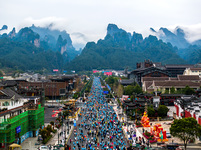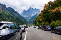 意黄金周,天门山的车行画卷